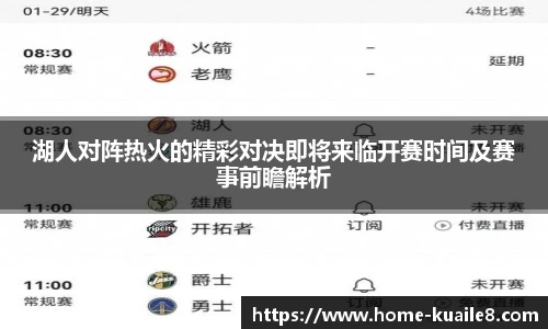 湖人对阵热火的精彩对决即将来临开赛时间及赛事前瞻解析